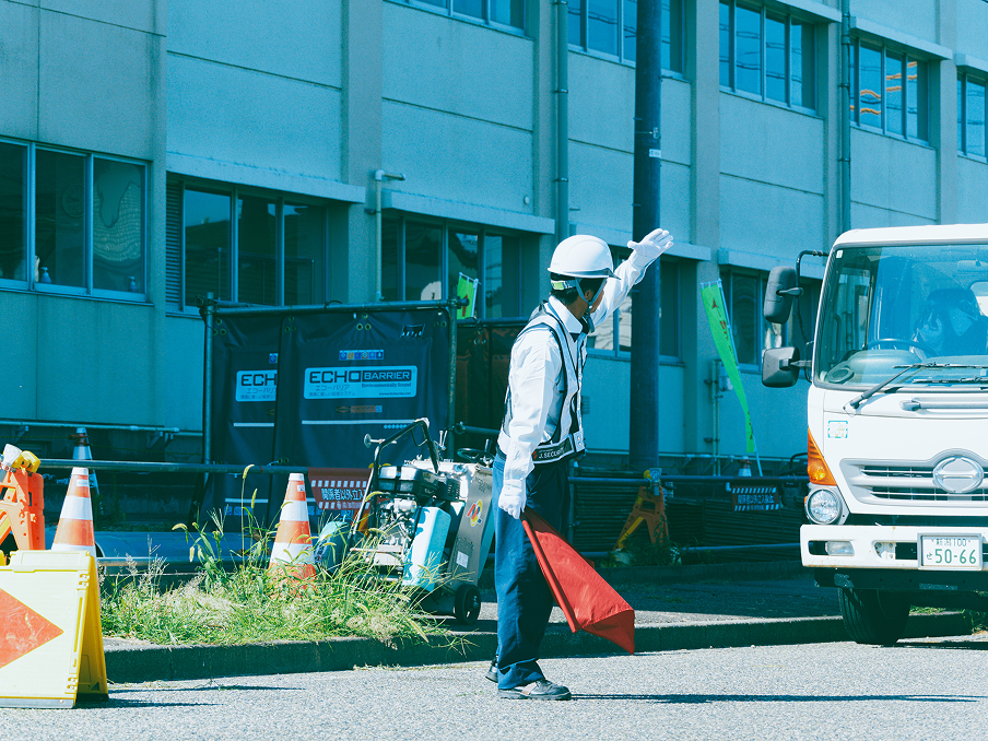 主に建設・土木工事の現場で、通行車両の事故防止、歩行者・作業員の安全確保、工事による渋滞の防止を目的とした警備を行っています。工事による支障を最小限に抑え、円滑な交通の維持とスムーズな作業の進行をサポートします。また、地域住民への配慮を大切にし、通行人や車両への丁寧で的確な対応を徹底しています。通行止め・近隣対応・案内業務をはじめ、車線規制、歩行者誘導、片側交互通行、出入口誘導、注意喚起など、現場の状況に応じた柔軟な警備体制を提供します。